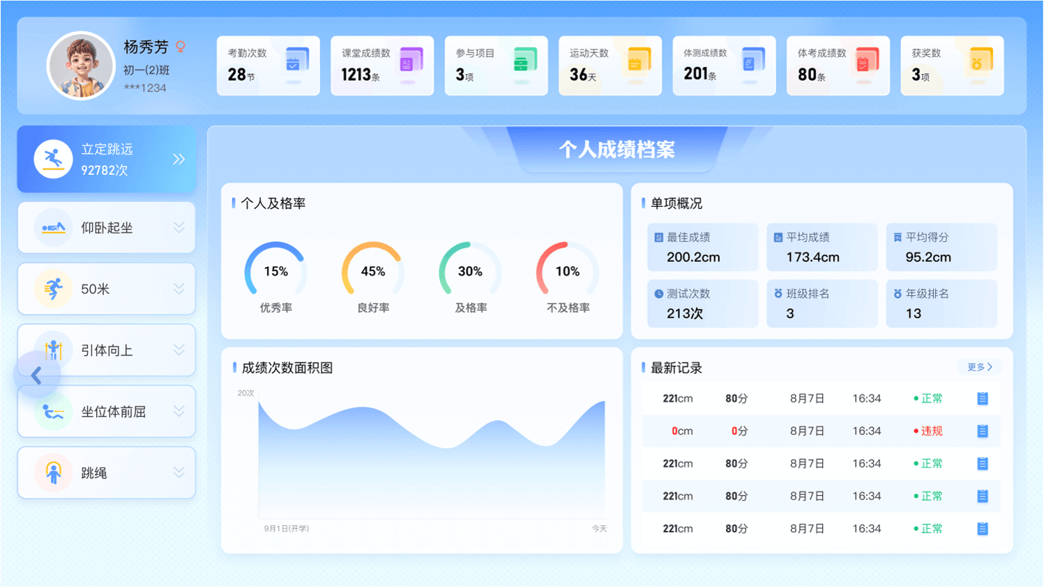 涵盖《国家学生体质健康标准》全部测试项目